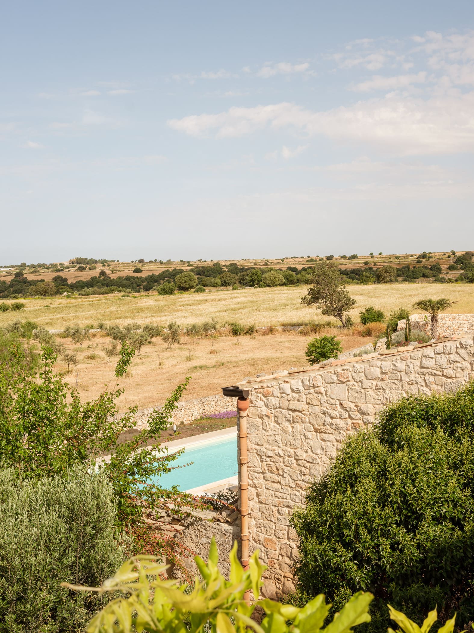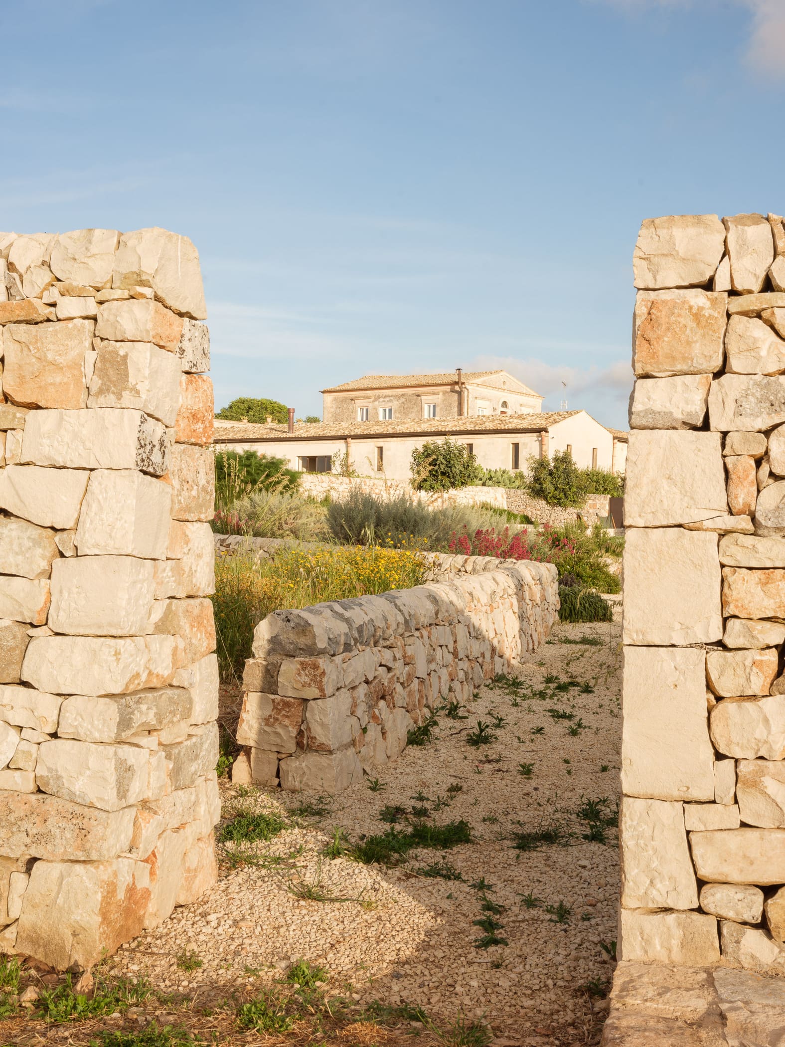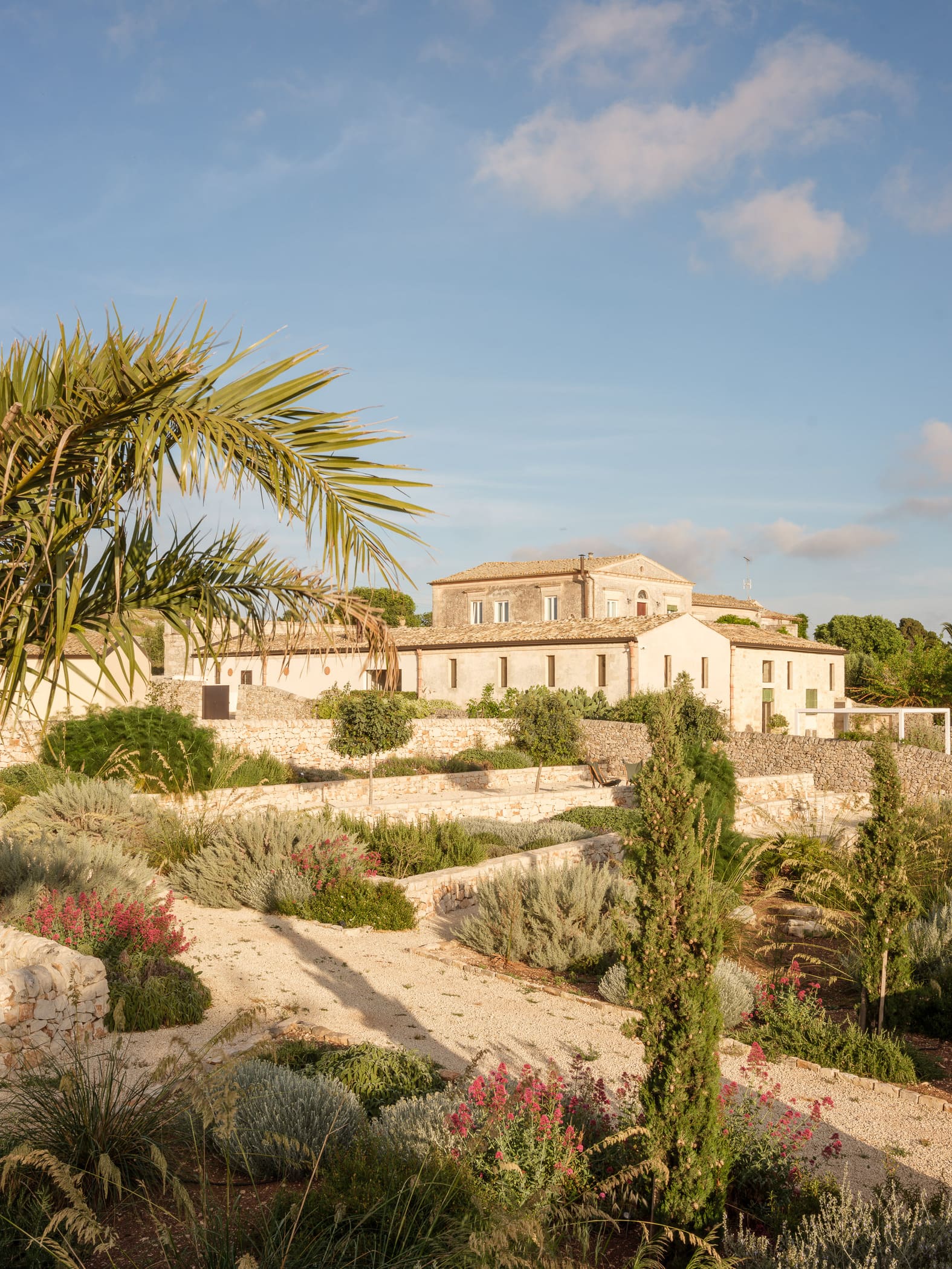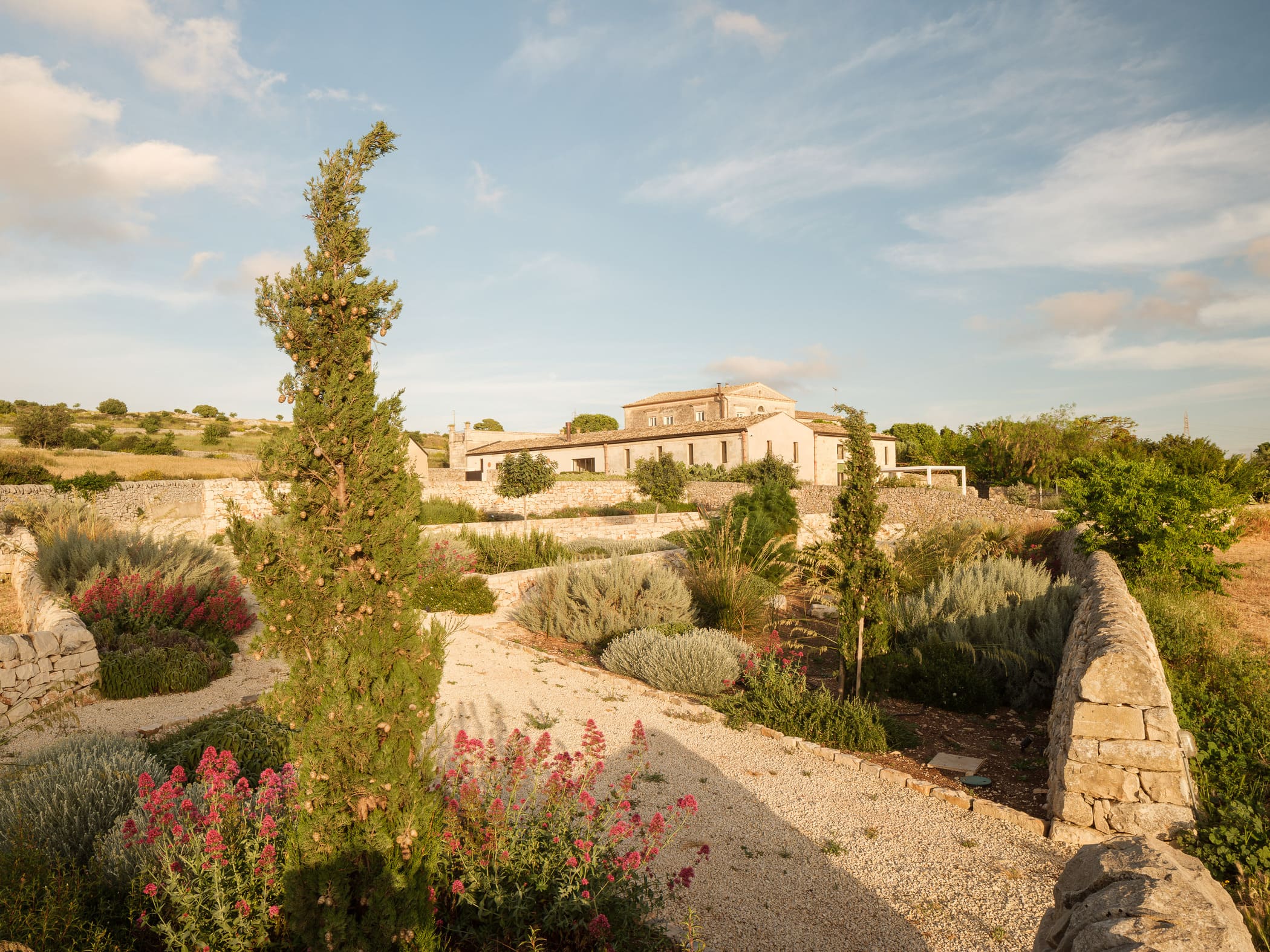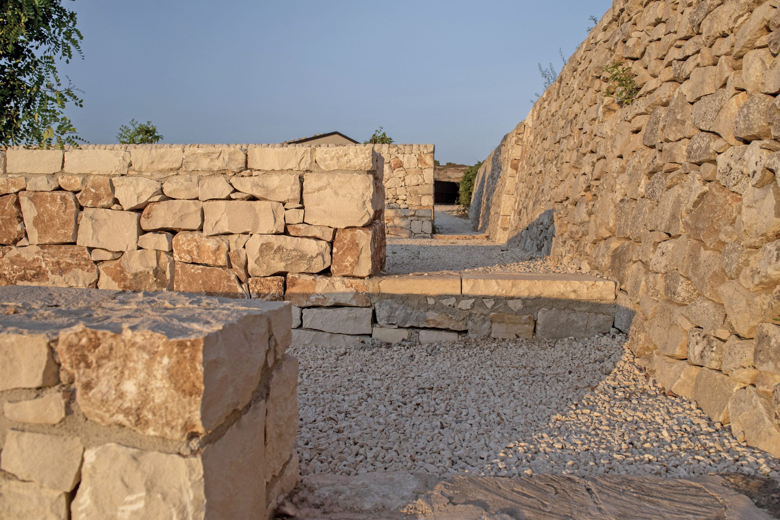 Las terrazas de muros de piedra seca, que descienden suavemente hacia el olivar al ponerse el sol, encierran una selección de 22 plantas aromáticas y crean varias zonas perfectas para aperitivos, paseos y eventos al aire libre.